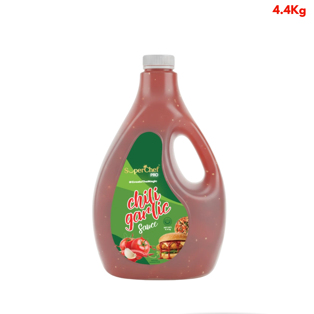 High quality Chili Garlic Sauce 4.4 KG large pack made from fresh tomatoes. Rich taste, thick texture and perfect for homes, restaurants and catering businesses.