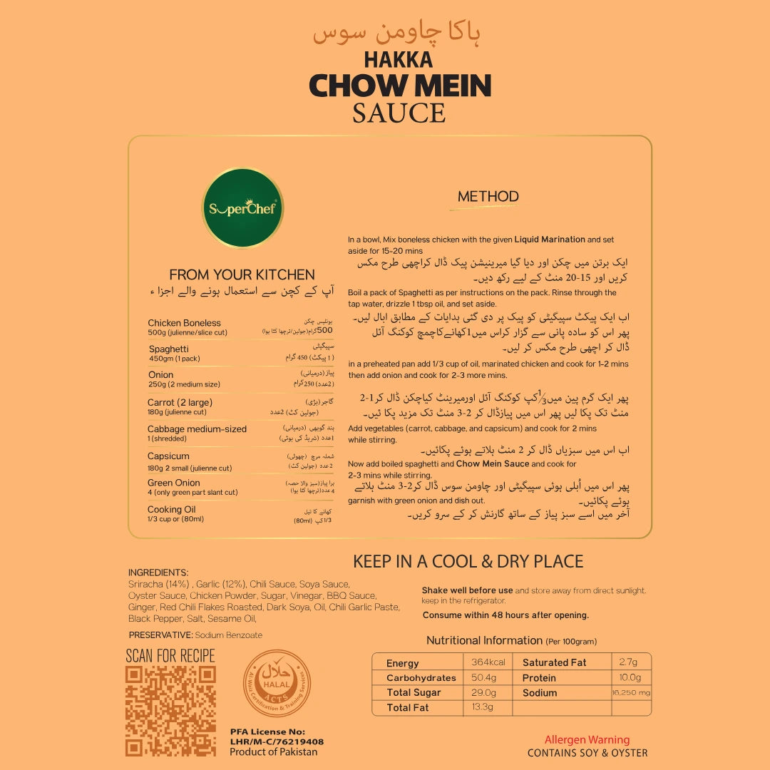 Elevate your stir-fries with our authentic Hakka Chow Mein Sauce, crafted to deliver the perfect balance of smoky, spicy, and umami flavors. Made with premium ingredients, this sauce transforms ordinary noodles and vegetables into a restaurant-quality dish in minutes. Ideal for quick meals, home cooking, or gourmet experiments, our sauce brings the bold taste of Hakka cuisine straight to your kitchen. Perfect for noodles, fried rice, and stir-fry recipes.