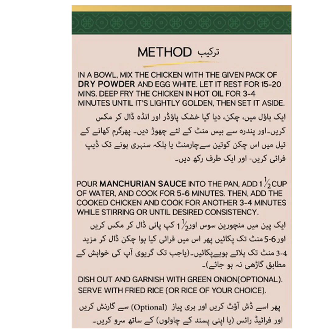 | GREEN ONION (for garnish ) | (Optional) | بری پیاز گارنش کے لیے |